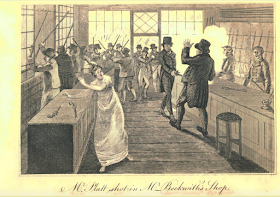 hundred men. Jem shot a customer, Mr Platt, while raiding a gunsmith’s shop. Several shops were attacked, and a mob rampaged through the streets until stopped by the troops and cavalry.The Spenceans were now wanted men...